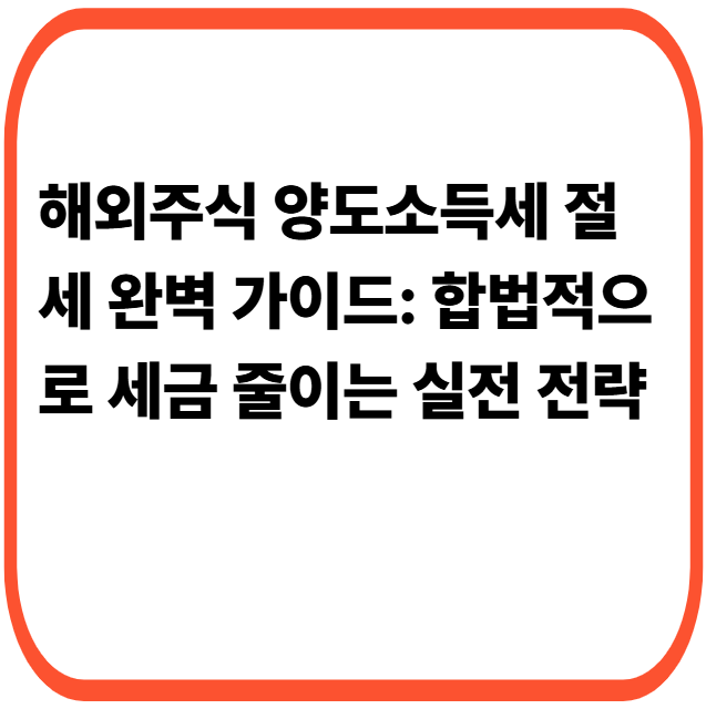 이 전략은 특히 해외주식 양도소득세 절세 검색에서 관심이 높은 방법입니다.